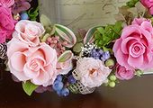 薔薇(2種)、マリアンヌ(2種)、アジサイ、ペッパーベリー、カスミソウ、クリスパム